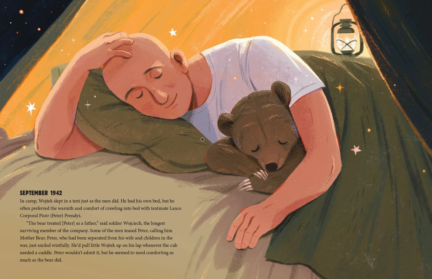 The picture book includes extensively researched back matter based on interviews with the soldiers and their descendants, photographs of Wojtek and friends, maps, a timeline, films, websites, sources, additional resources, further reading, and more!