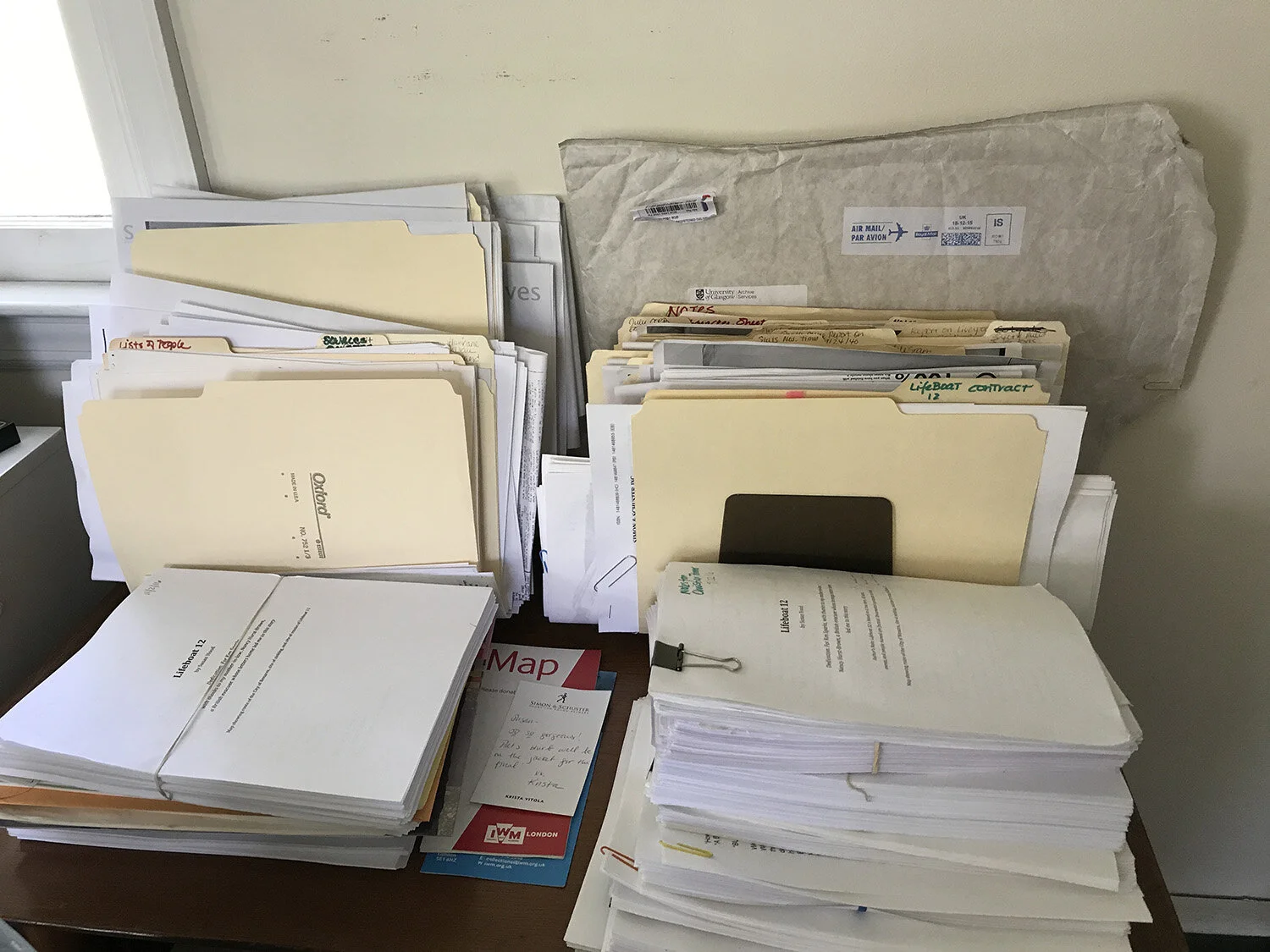 I was blessed again when I found Ken Sparks, the hero of the story, the “boy” who spotted the plane that saved everyone aboard the lifeboat. Ken was 88-years-old, living a few hours outside of London. When I called and asked if I could interview him, he said, “Come on over anytime, Lovie!” Couldn’t pass up an opportunity like that! So my husband and I traveled to England, stayed with relatives, and spent two weeks interviewing Ken and doing research at the National Archives, the British Library, the Imperial War Museum, and the National Maritime Museum.
