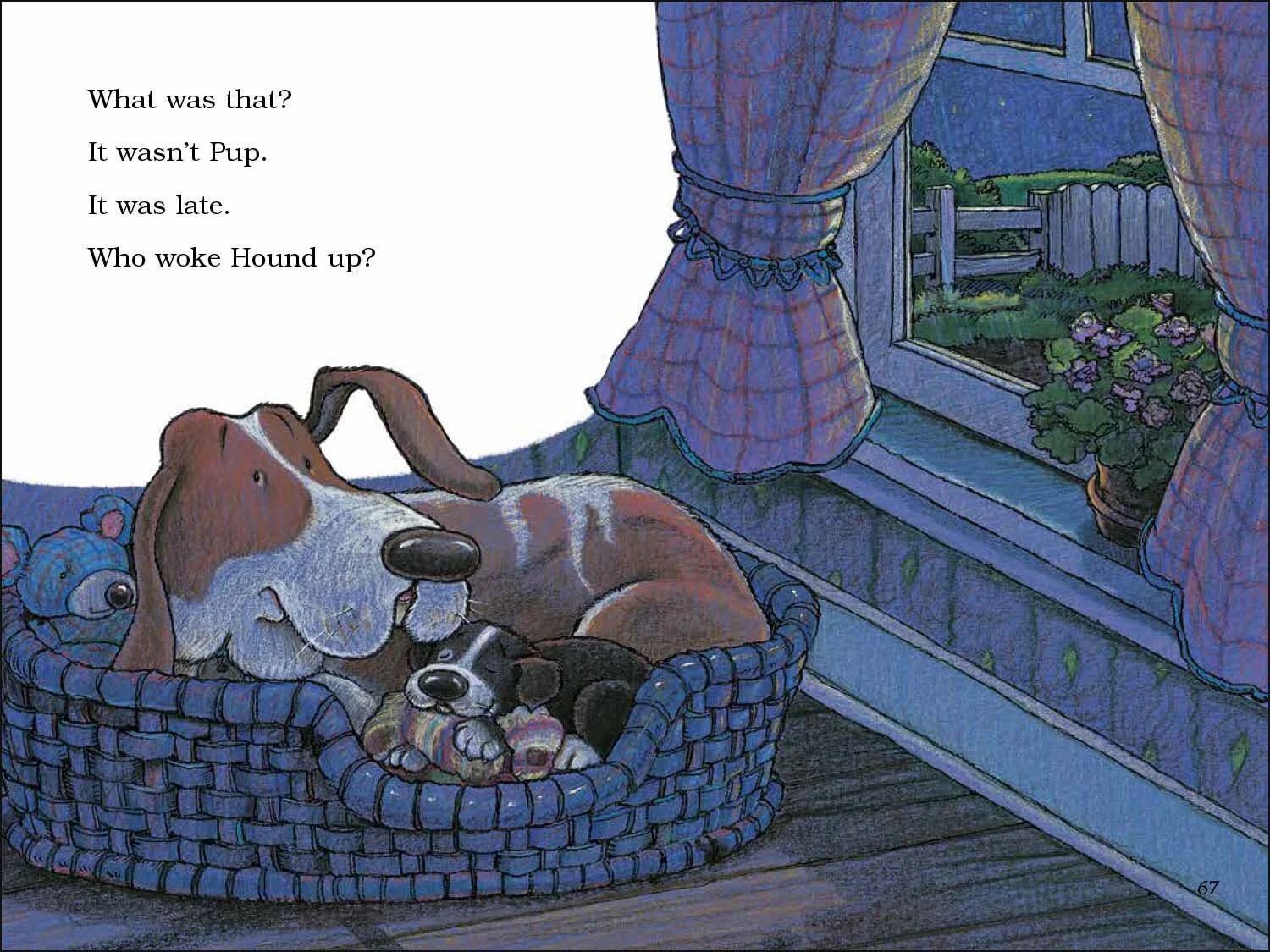 Late one night, Hound notices that Pup has vanished from his bed. Where could he be? This Level 1 first reader contains short stories, simple sentences, easy vocabulary, simple visual clues and lots of repetition.
